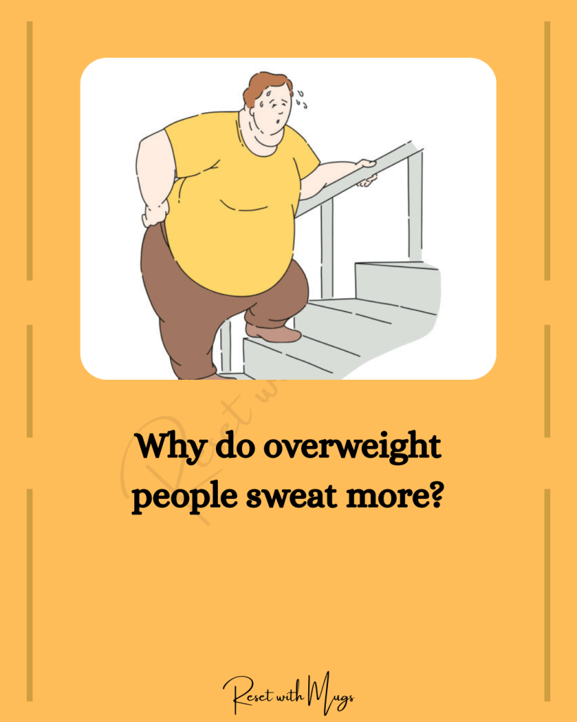 When you are overweight, you need to put more effort to move. The extra effort needed generates more heat causing your body to sweat more.
