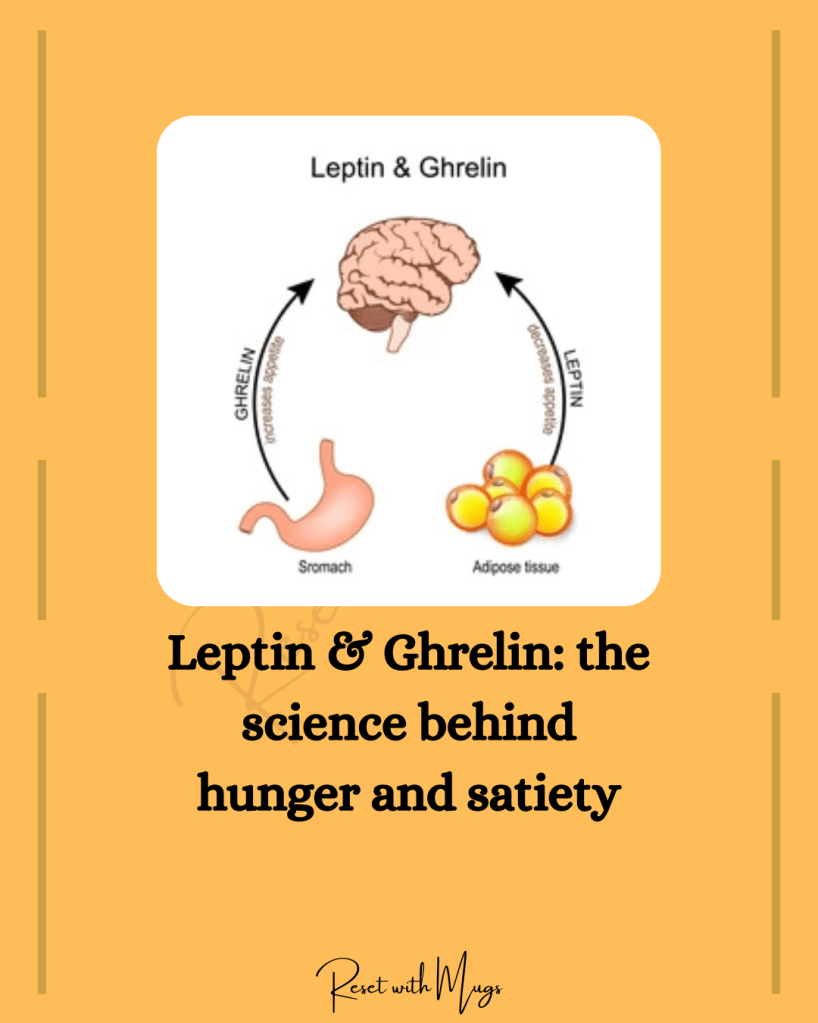 Often referred to as the body’s ‘see-saw’ hormones, leptin and ghrelin play a crucial role in regulating hunger and satiety at a biochemical level. Ghrelin, produced by the stomach when it’s empty, signals the brain that it’s time to eat. On the other hand, leptin, secreted by fat cells, communicates fullness and helps suppress appetite. Leptin also plays a vital role in maintaining energy balance by regulating how much we eat and how much energy we expend — essentially helping to keep our body weight stable.