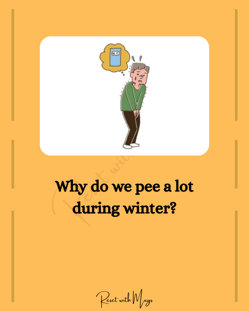 It is so cold during winters and quite frustrating that you feel like using the toilet often. The reason this happens is because when you feel cold, in an attempt to protect the internal organs, your body increases blood flow to the organs while constricting blood vessels in the skin and body’s extremities. This action signals the kidneys to eliminate excess fluid which is thrown out as urine and the phenomenon is called cold diuresis. This results in an increase in blood pressure. In addition to this we also sweat less in winter so that also adds to the frequency of urination.