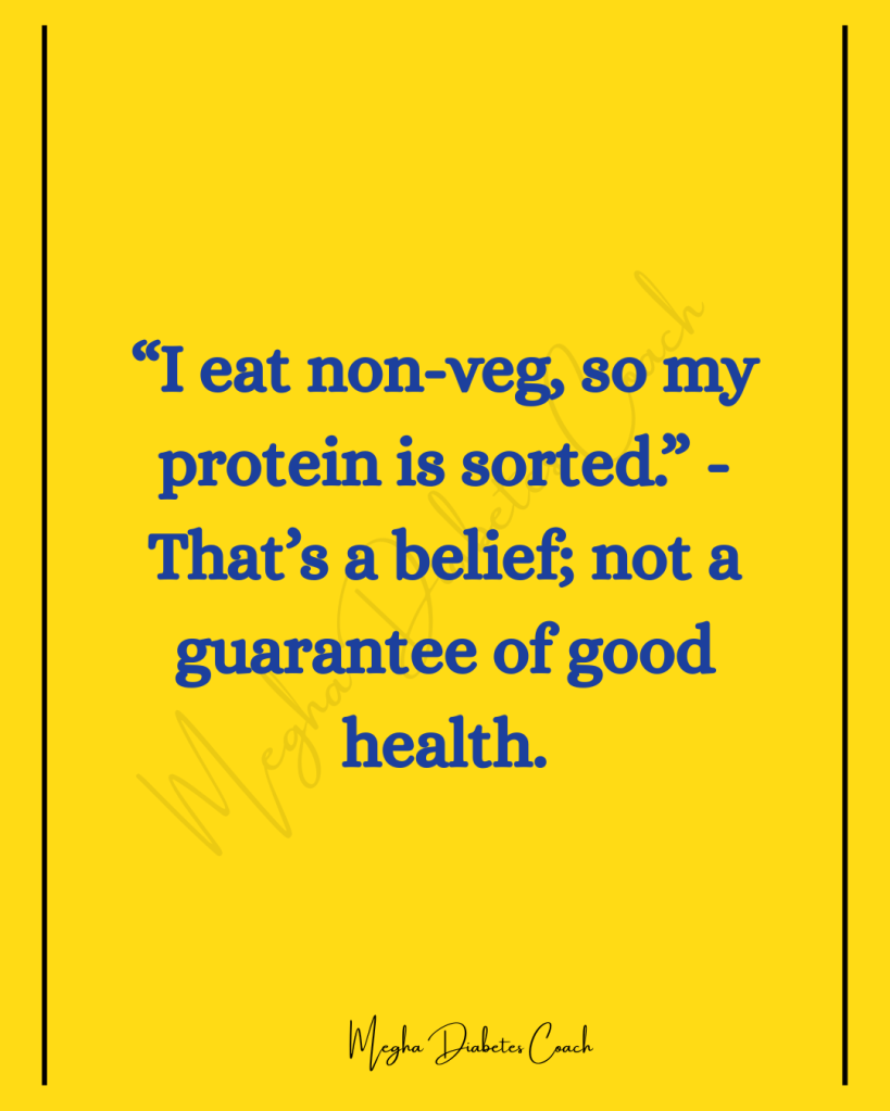 A common belief I encounter is that non-vegetarians are automatically healthier because they consume enough protein. While non-vegetarian foods do provide high-quality protein, protein intake alone does not determine metabolic health.